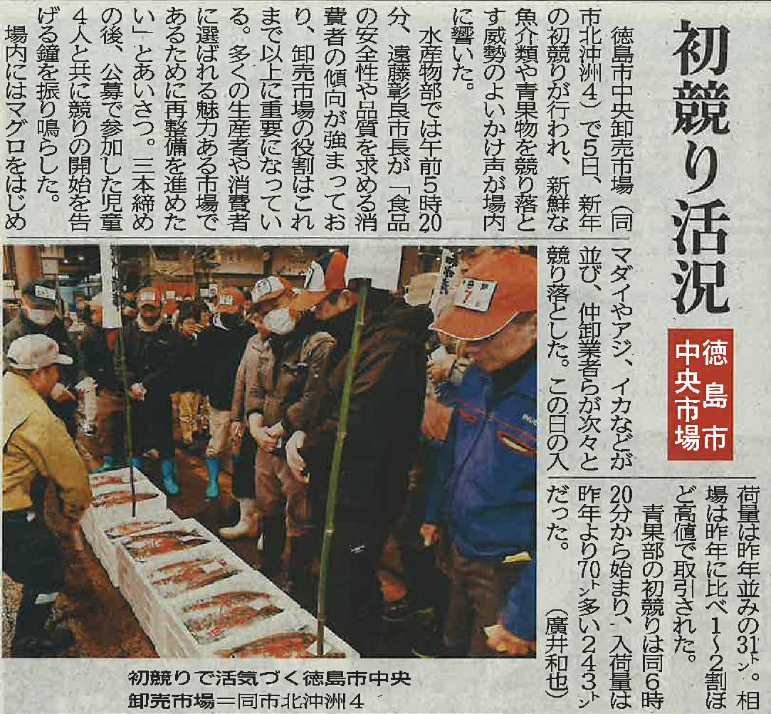徳島市中央卸売市場での初競りの様子が掲載されました。