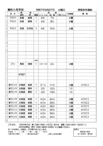 青物入荷予定 09 27 土